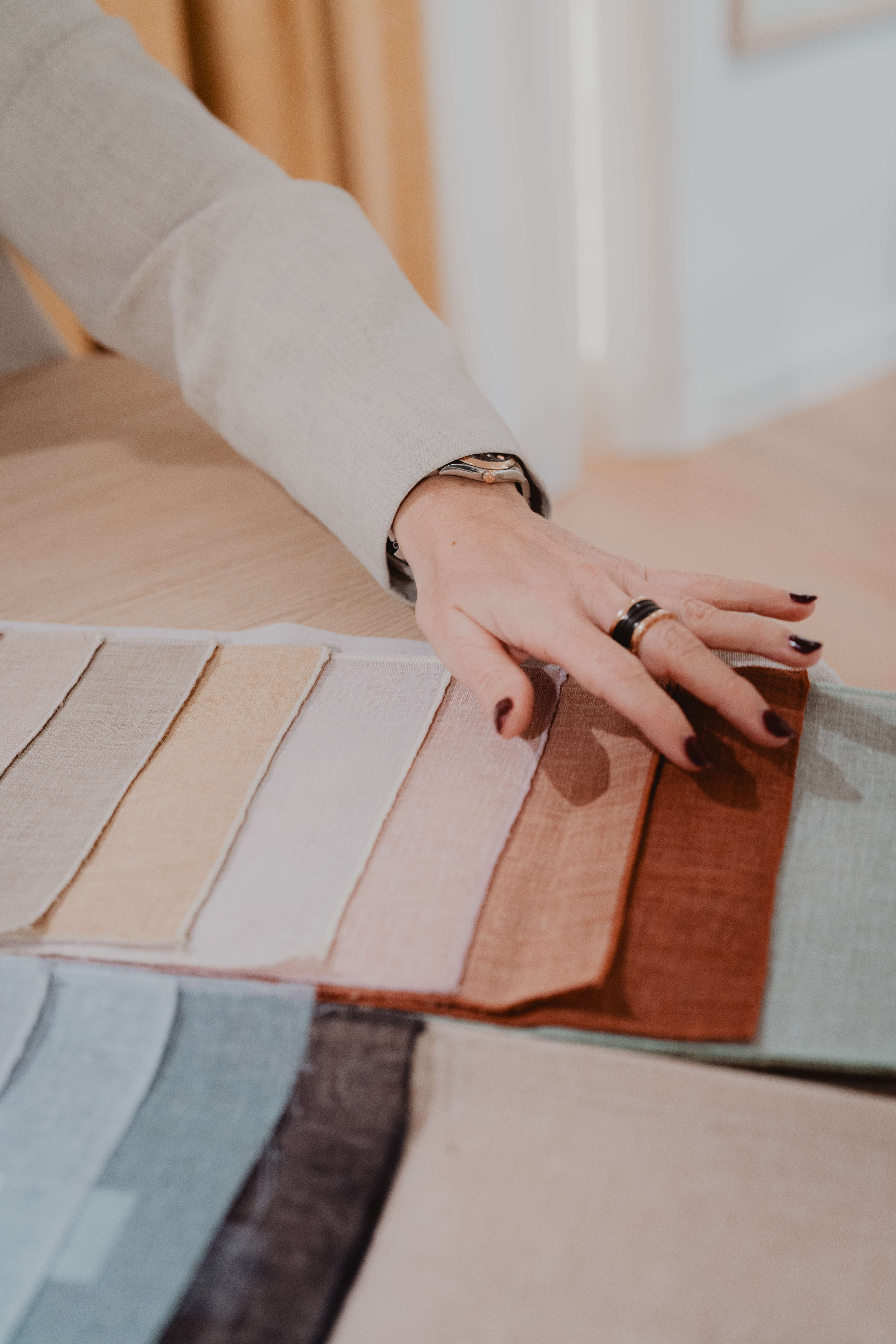 Chaque collaboration débute par un échange approfondi afin de comprendre les attentes et le mode de vie du client. Les échantillons sont présentés à domicile, facilitant un choix éclairé et cohérent avec l’ensemble de l’intérieur.